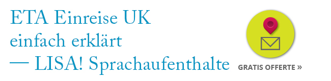 Bei einem LISA! Sprachaufenthalt in Grossbritannien für Sie oder Ihr Kind benötigen Sie eine ETA. Bitte beantragen Sie die ETA mindestens 3 Tage vor der Abreise. Bei weiteren Fragen stehe ich Ihnen per Email oder Telefon zur Verfügung. Unsere Sprachaufenthalte in England gehören zu den besten, die Grossbritannien zu bieten hat.